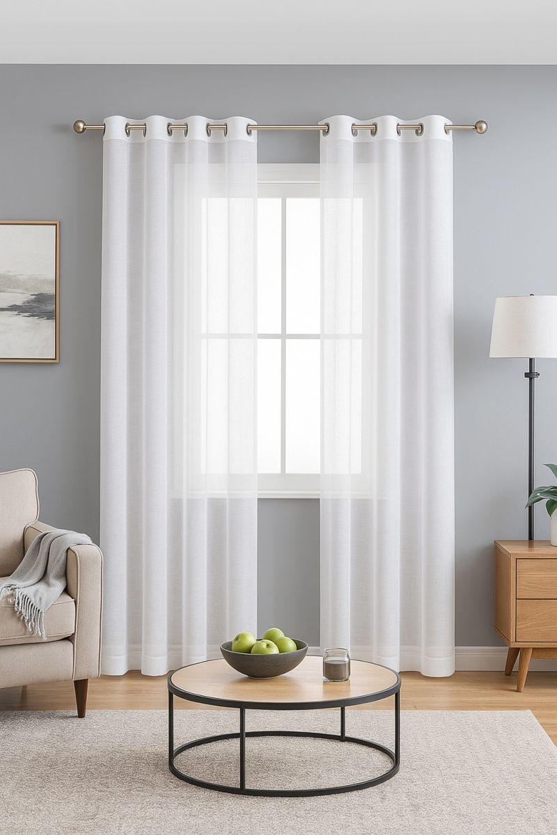 Kérdés?Magas minőségű fátyolszövetből készült. A megadott szélesség a ráncolás előtt értendő. Készen áll a felakasztásra: fém karikával fellógatható.
