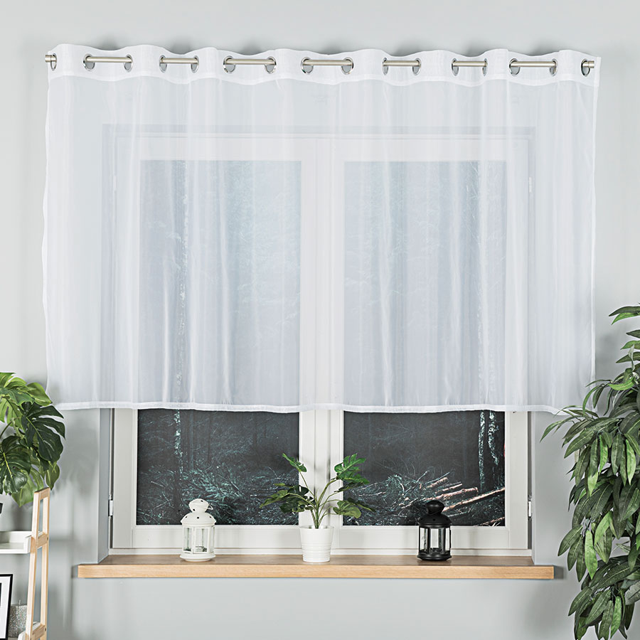 Kérdés?Magas minőségű fátyolszövetből készült. A megadott szélesség a ráncolás előtt értendő. Készen áll a felakasztásra: fém karikával fellógatható.