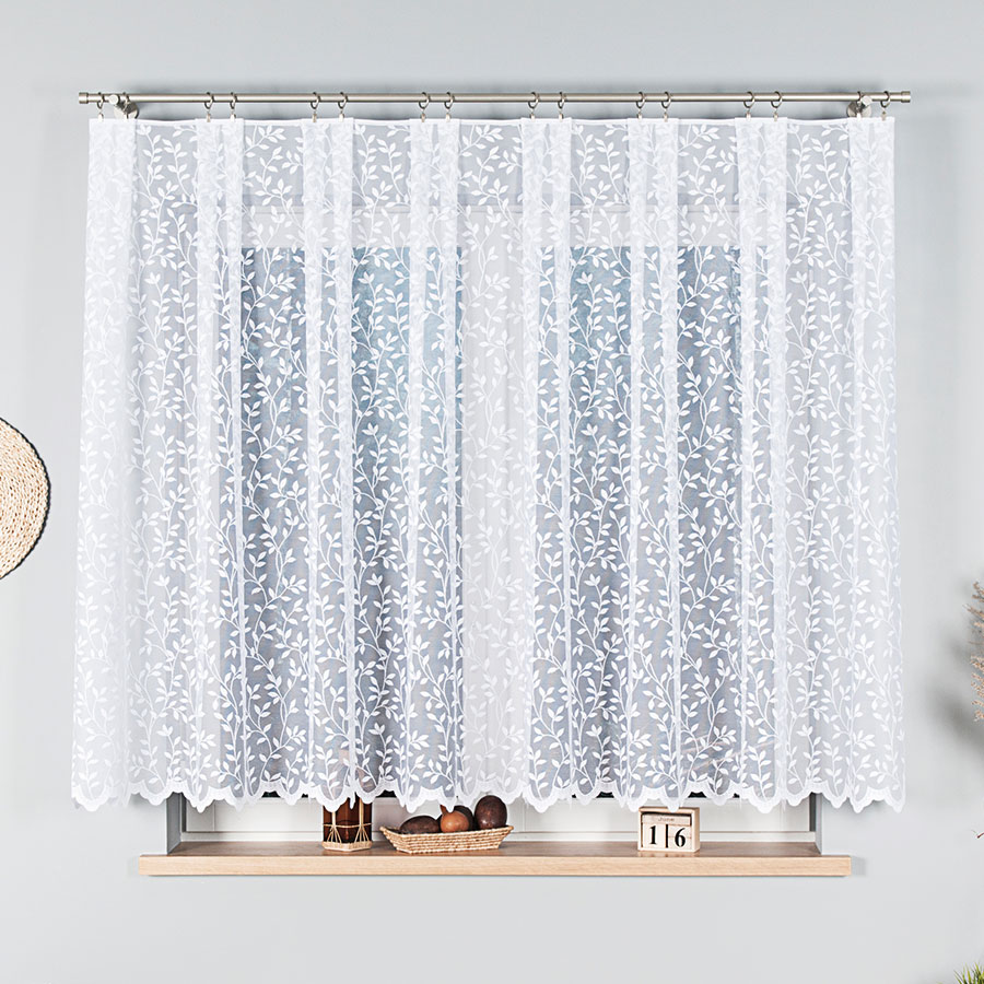 Jacquard függöny, ráncoló szalaggal ellátva. Anyaga fehér, nagyon szép mintákkal díszített. Ráncolást követően a függöny szélessége megfeleződik. A megadott magasság a függöny legmagasabb pontján értendő.Fuggony rovidites koldseg az 1.500,00 HUF. Kerem rendees kozben a megjegyzes mezoben beleirni hogy mennyit kell roviditeni.