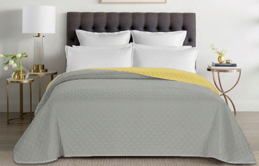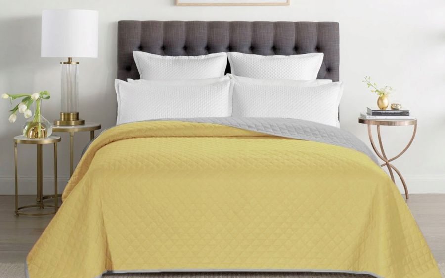 Ágytakaró steppelt rendszeres rombuszokkal. Az ultrahangos technológiával (steppelés fonal nélkül) nincs félelem attól, hogy a használat során a varrás felbomlik. Az ágytakaró tartós és nyúlékony.